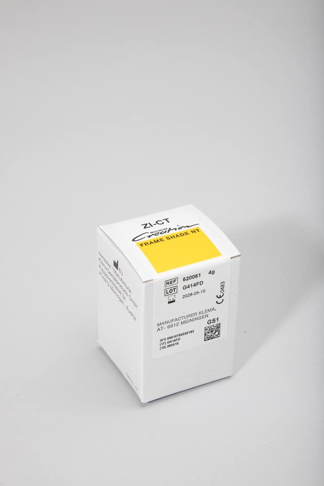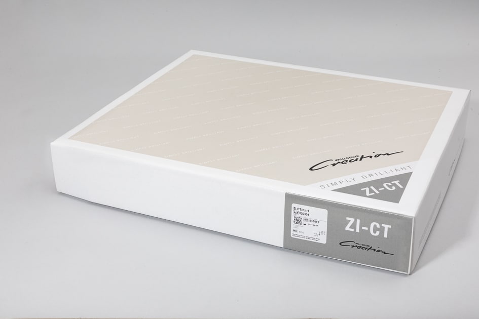Creation ZI-CT est une céramique de recouvrement à haute fusion avec un coefficient d’expansion thermique (CET) de 8,6 (à 25 – 500 °C) conçue pour le recouvrement de structure en dioxyde de zirconium. Elle convient au revêtement de couronnes, de bridges et de facettes en dioxyde de zirconium.