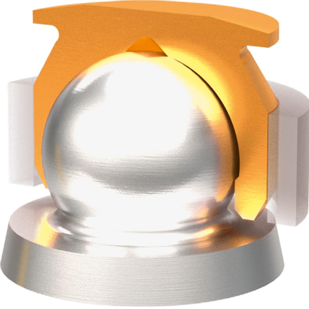 – Le principe de l’ancrage sphérique permet un certain degré de liberté lors de la pose de la partie mâle